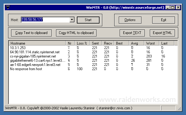 There is a good way to combine these actions by using a free program, WinMTR, by Vasile Laurentiu Stanimir (now hosted at http://winmtr.net/), which combines the tracert and ping commands. However, you would still need to determine the server’s IP through the netstat command first. (The one I show in this example is an older open source one, hosted at SourceForge.net)