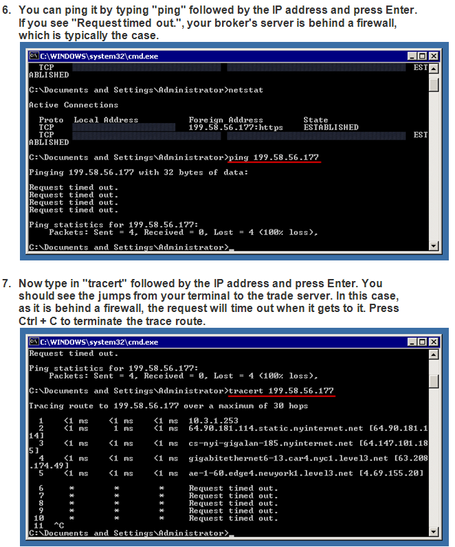 Connection speed is important when it comes to trade execution. To check your latency to your broker’s trade server, you need to determine the server’s IP, then ping it