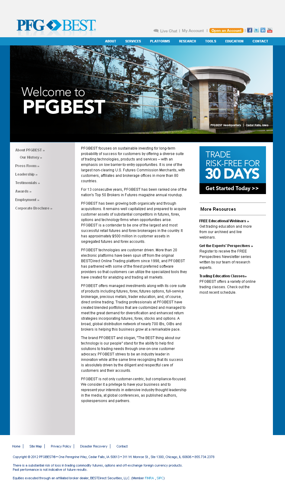Note that Peregrine Financial Group Inc., better known as its online moniker, PFGBEST, was a NFA-regulated broker. Its website looked professional enough, with a plethora of salient and practical information. And if its testimonials page was to be believed, the customer service was amazing. It operated out of its own building in Cedar Falls, costing $18 million to construct, and had 200 employees. Physically visiting it, I hazard you wouldn’t think it a bucket shop.